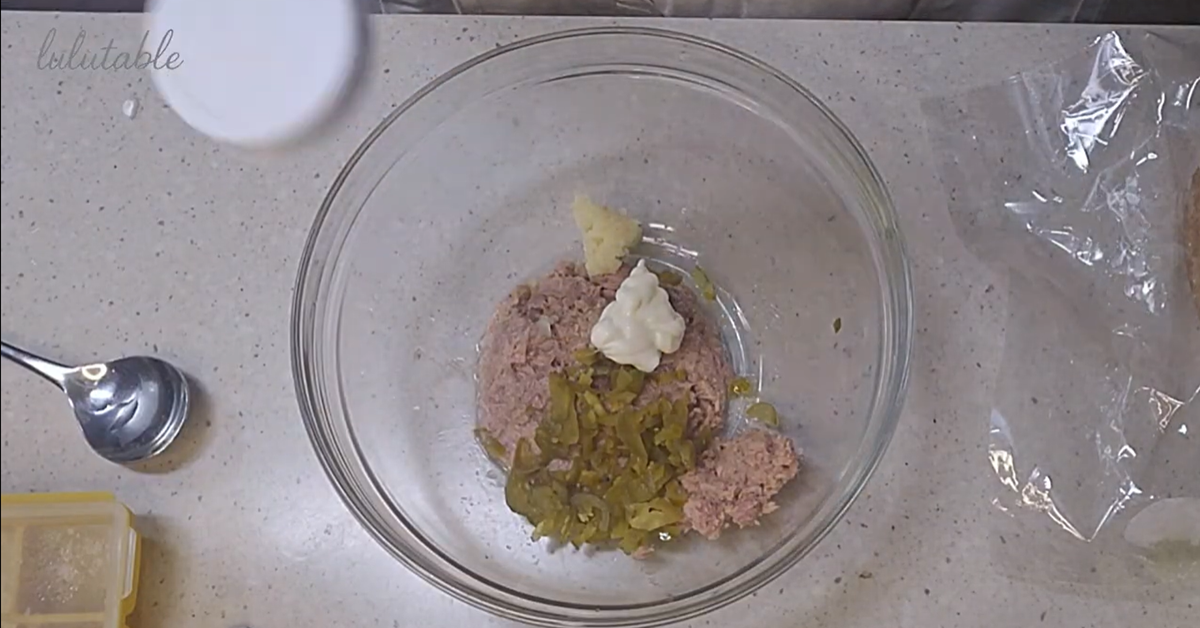 - 기름 뺀 참치 + 잘게 썬 양파 + 플레인 요거트를 섞고