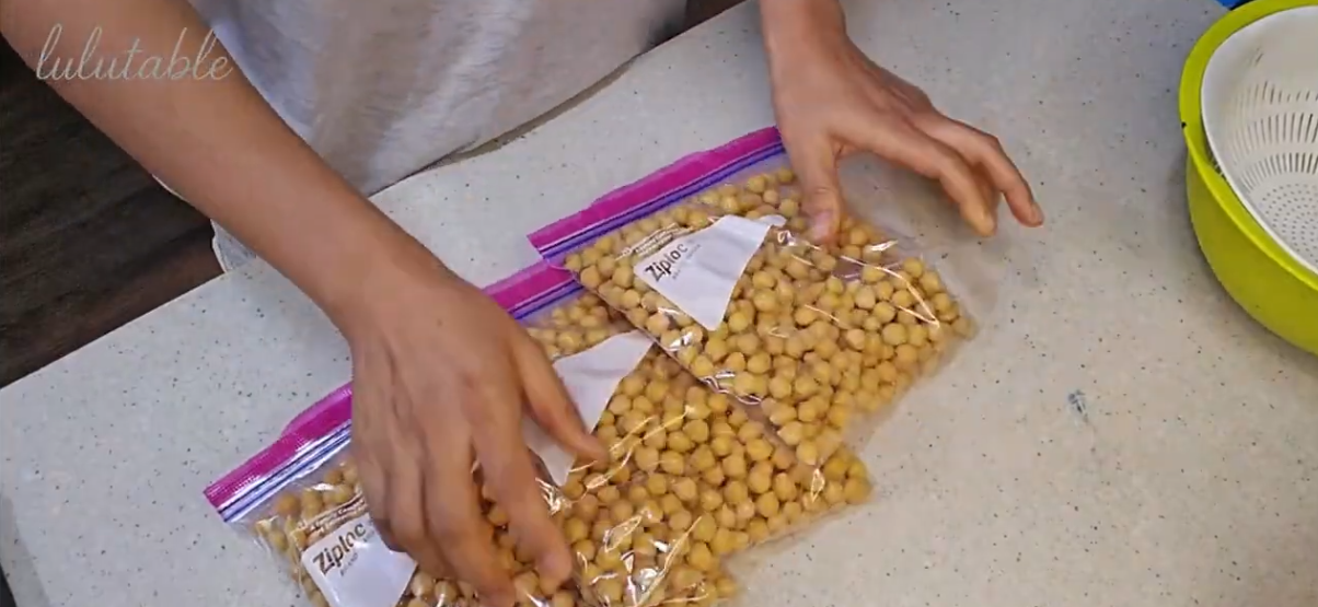 - 병아리콩은 삶아 식힌 뒤 냉동