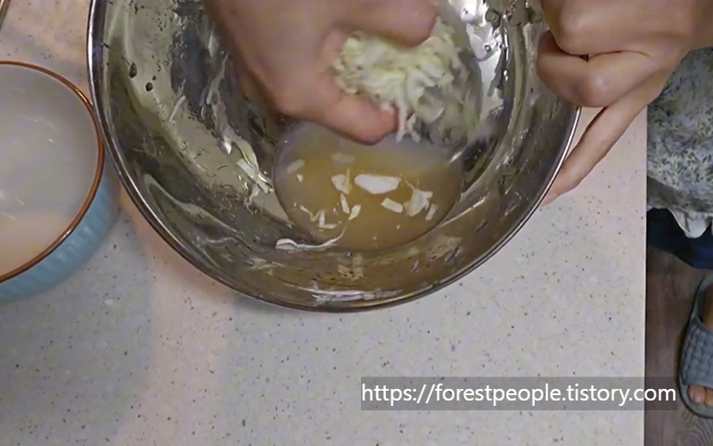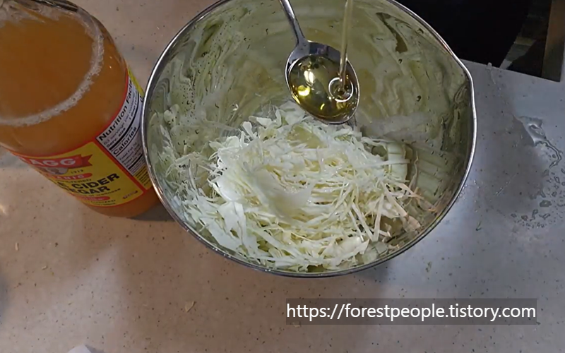- 양배추 채를 깨끗이 씻어 물기를 제거합니다.