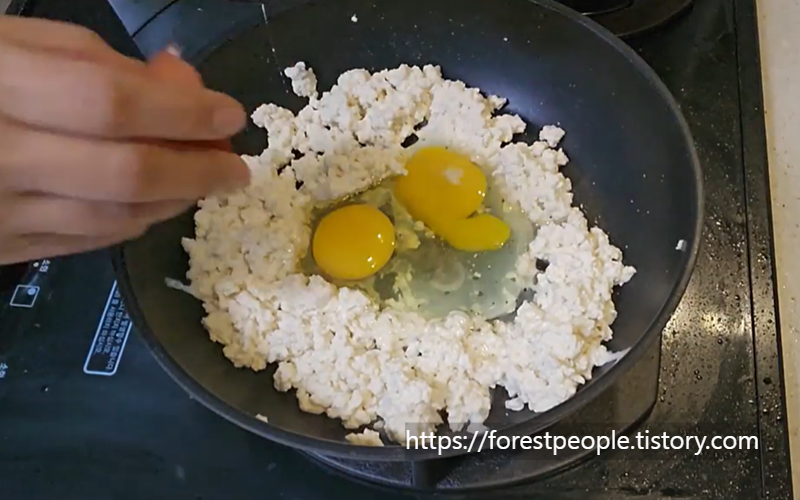 두부 위에 부어 스크램블처럼 섞어주면 끝