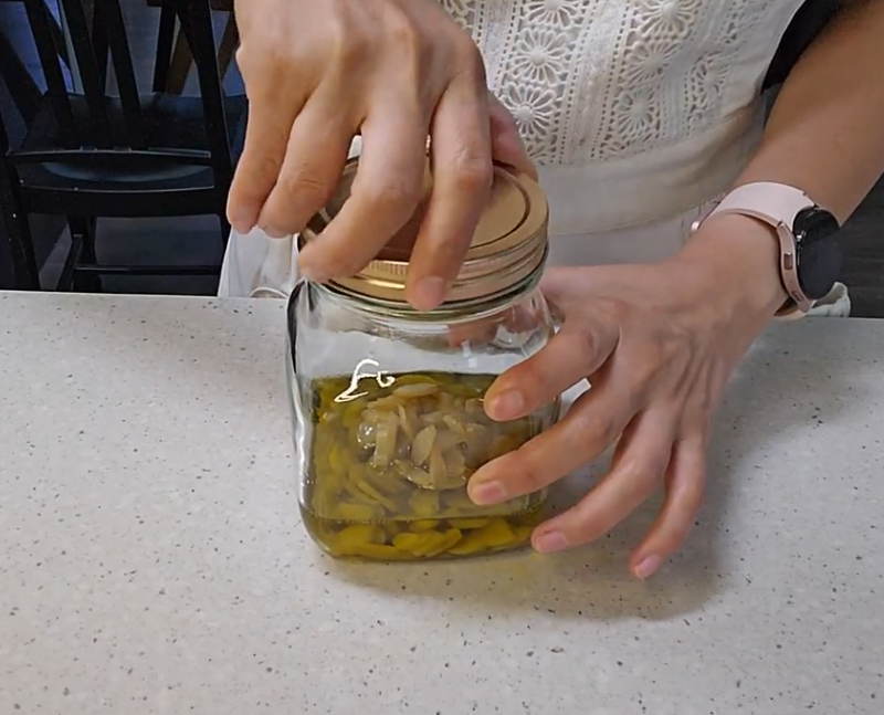 반드시 익힌 마늘로, 깨끗한 병에 담고 냉장보관 하세요!