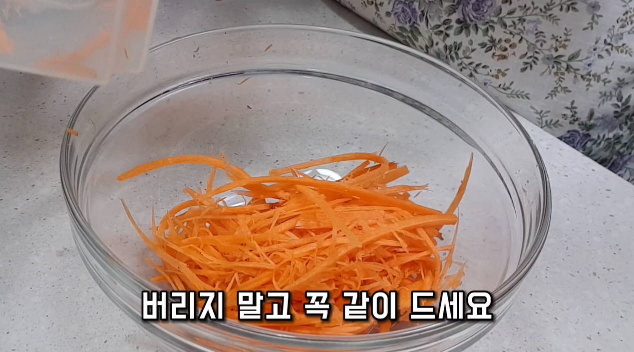 - 당근은 껍질째 채 썰어 주세요 (껍질에 영양이 많아요).